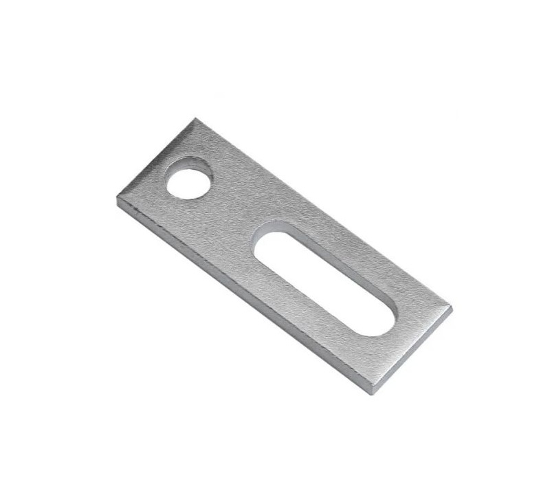 Adaptorul este o placă metalică compactă și robustă, fabricată din oțel inoxidabil de calitate superioară, concepută pentru a face legătura între șuruburi și profile metalice în diverse aplicații de montaj, în special în sisteme de susținere a panourilor fotovoltaice.